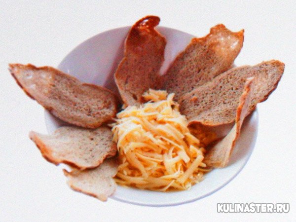 Можно также подавать тонко нарезанные кусочки подсушенного хлеба и мелко тёртый сыр «Грюйер».